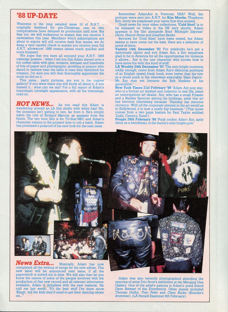 Photographs and a review appeared in issue 12 of the A.N.T. newsletters in 1988