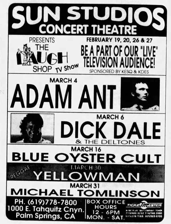 4th March 1993 - Palm Springs, CA, Sun Studios Concert Theatre