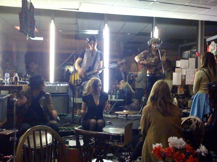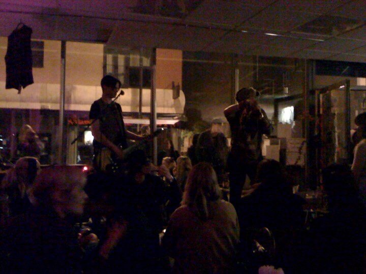 Adam played in the shop with his band on the window stage