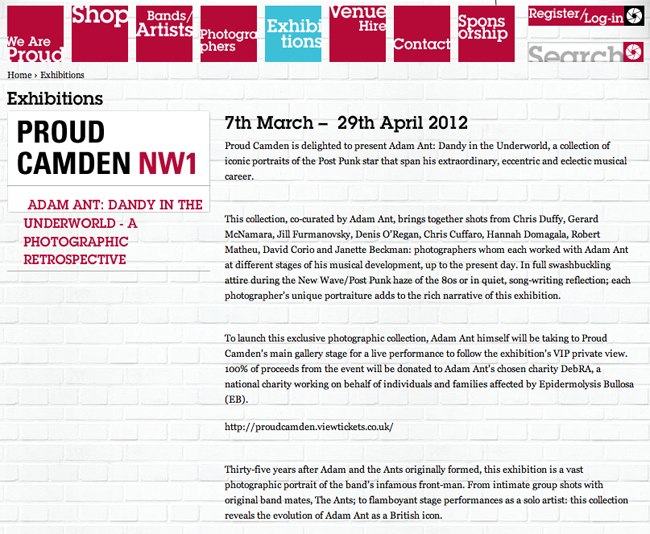 The show was a benefit gig for the charity DebRA and was also the opening for the Dandy in the Underworld photographic exhibition