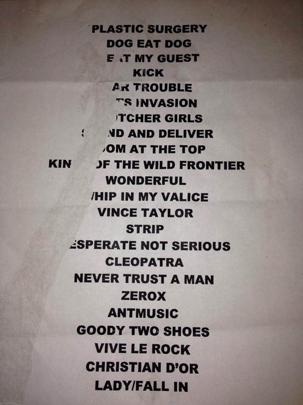 Set list (as per written list)