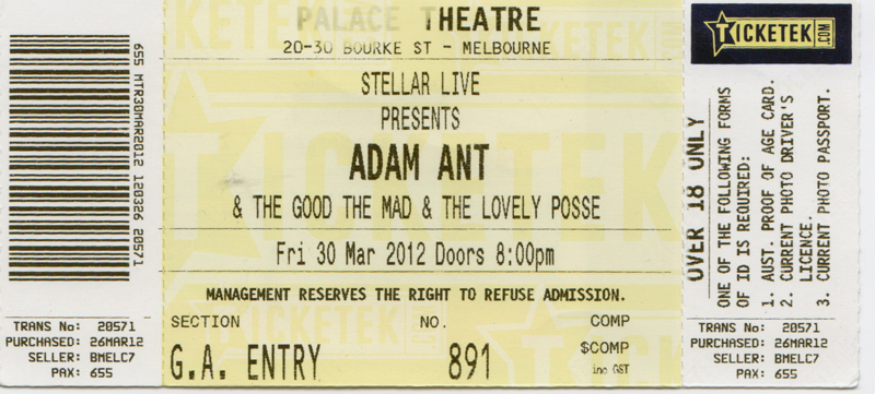 30th March 2012 - Palace Theatre, Melbourne, Australia