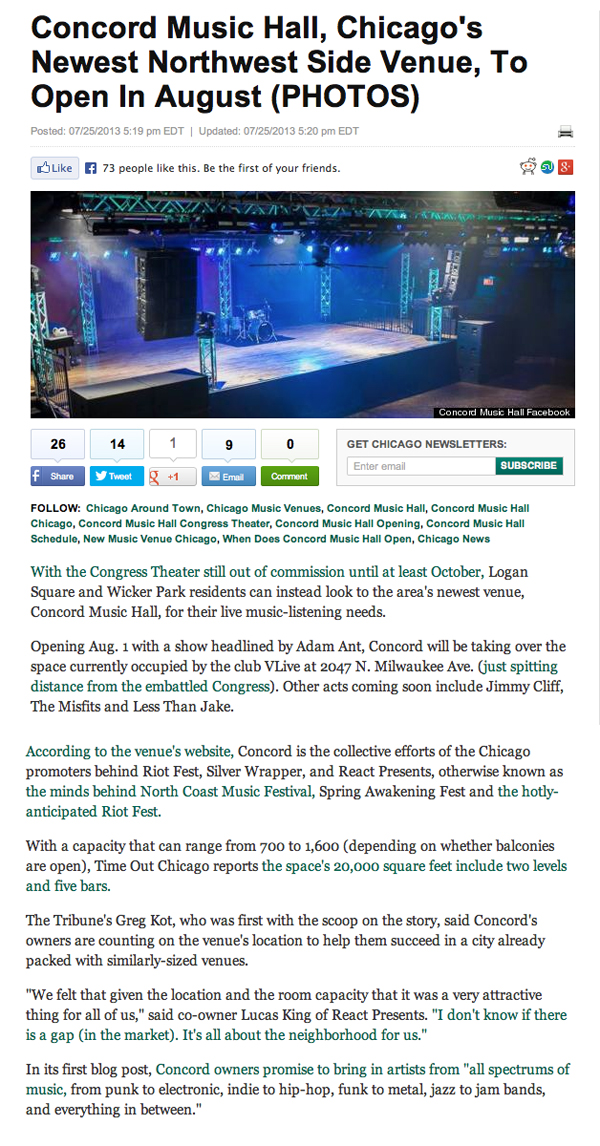1st August 2013 - Chicago, IL, Concord Music Hall