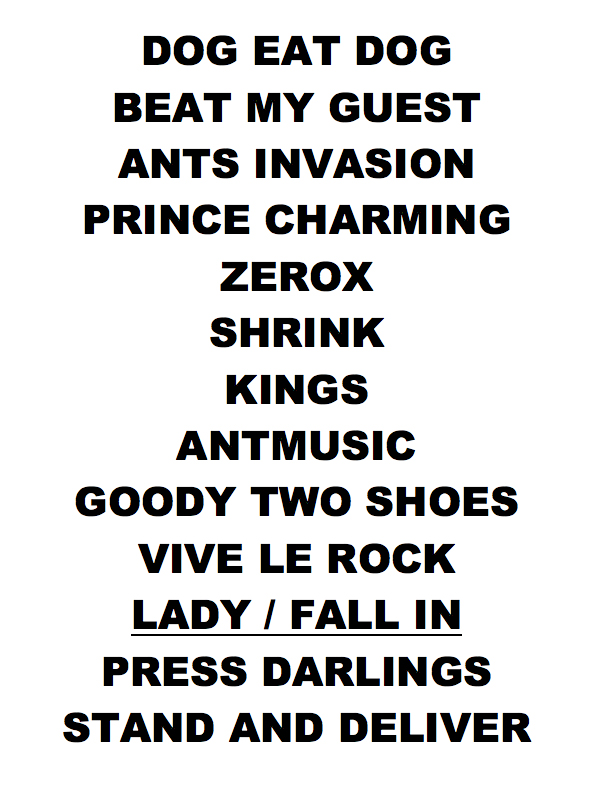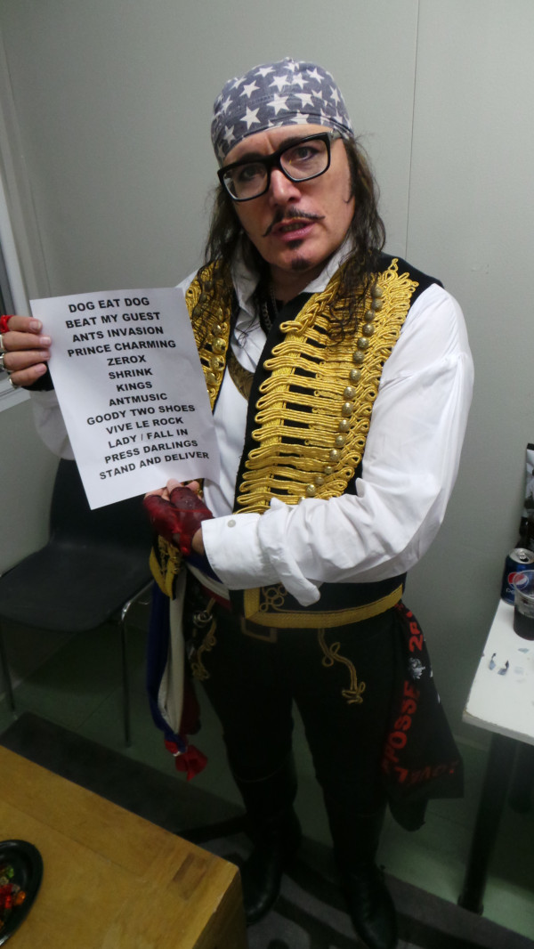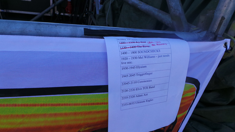 Due to the festival schedule running late Adam was made to reduce the set by one song.
