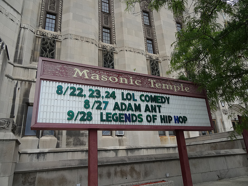 The theatre was originally called the Cathedral Theatre when the tour was booked and the name changed ny the time Adam came round to playing in Detroit on the tour