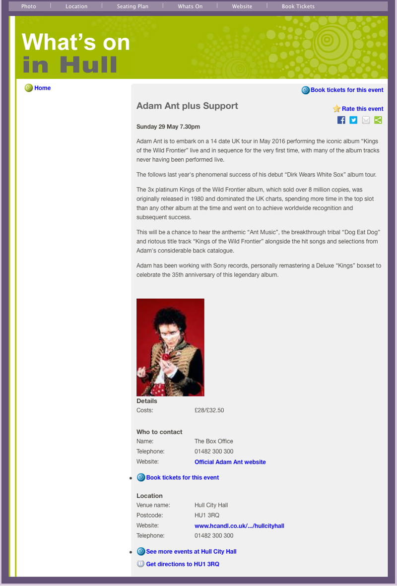 Sixth night of the Kings of the Wild Frontier Live 2016 tour.