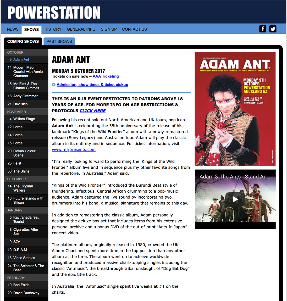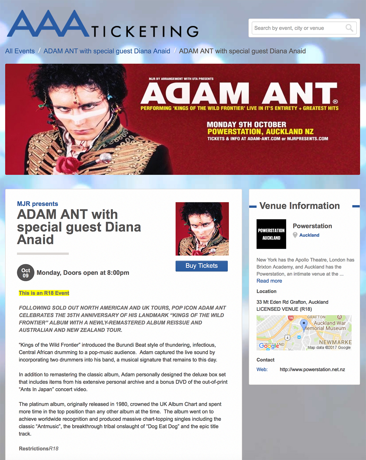 9th October 2017 - Auckland Powerstation, New Zealand