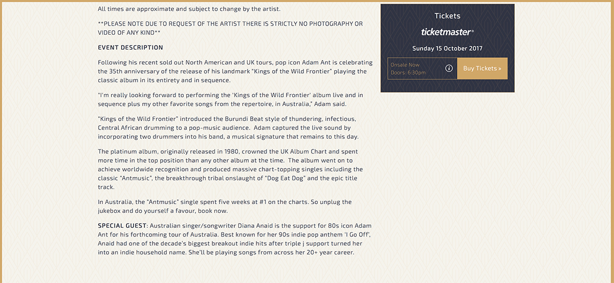 5th night of the New Zealand/Australia Kings of the Wild Frontier tour