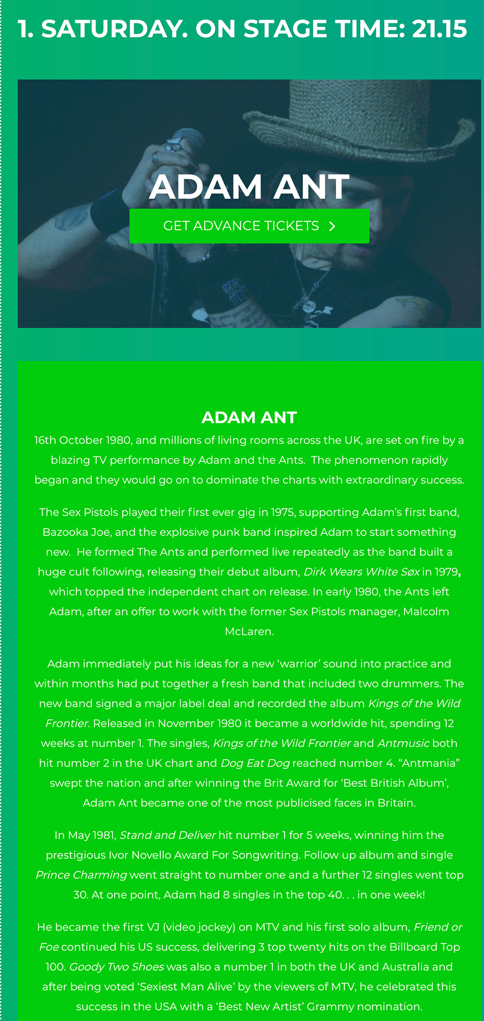 Adam headlined the second and final night of the two day festival