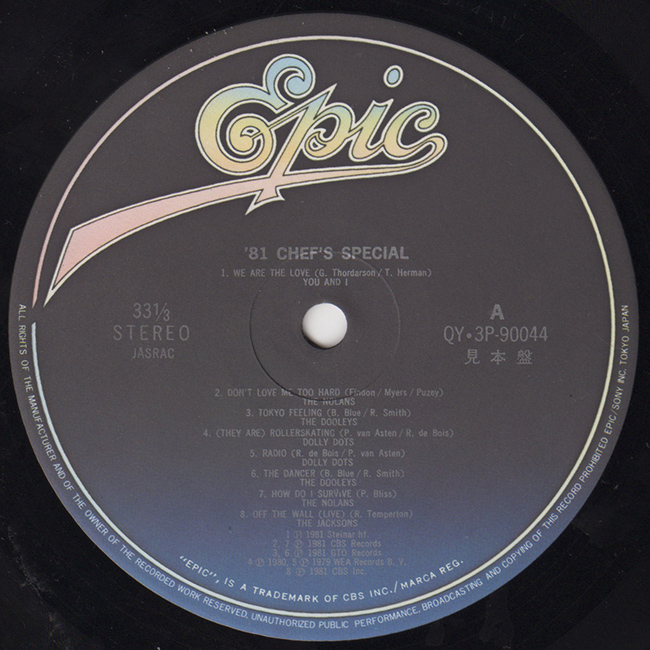 Side 1 You and I - We Are the Love The Nolans - Don't Love Me Too Hard The Dooleys - Tokyo Feeling Dolly Dots - (They Are) Rollerskating Dolly Dots - Radio The Dooleys - The Dancer The Nolans - How Do I Survive The Jacksons - Off The Wall (Live)