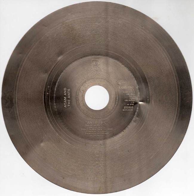 Adam and the Ants Country Label Catalogue Number Matrix numbers Format Release date A-side B-side The third single to be taken from the Kings of the Wild Frontier album. Pressing plate for the IML A side of the Antmusic single. The ADAM AND THE ANTS font on the IML label for this pressing is in small bold font. |