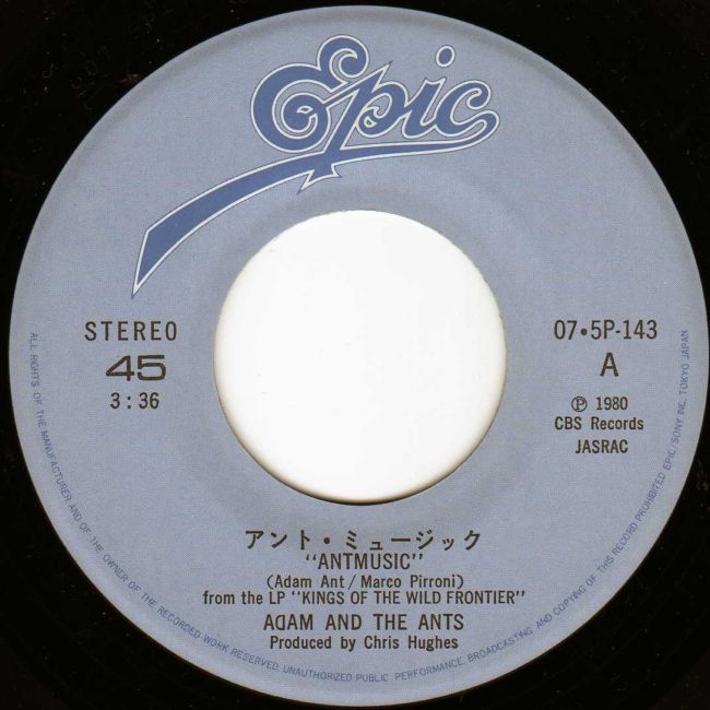 Adam and the Ants Country Label Catalogue Number Matrix numbers Format Release date A-side B-side After the worldwide success of Adam and the Ants, the Japanese market starts to release singles through Epic, catching up with Antmusic and Dog Eat Dog on a single release. The photograph on the front of the sleeve looks like a live shot from the early part of 1981. |