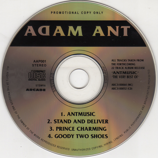 Adam Ant Country Label Catalogue Number Matrix numbers Format Release date Tracklisting 4 track promotional compilation CD. The full album was available as a standard CD, double CD (which included a live performance), cassette and a VHS video compilation. |