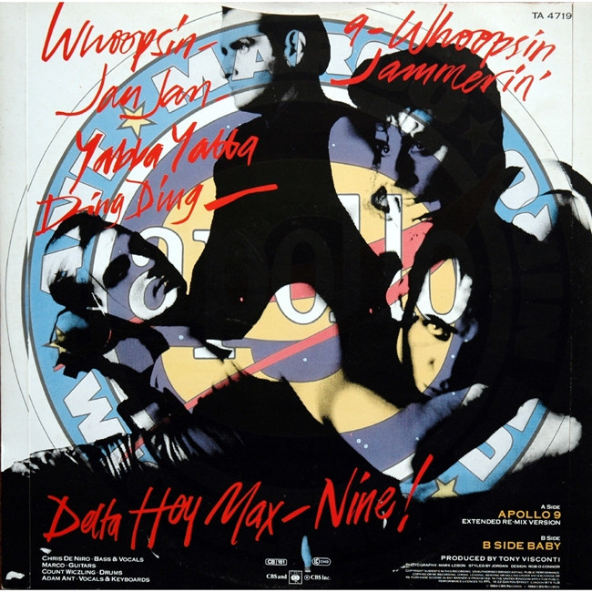 Adam Ant Country Label Catalogue Number Matrix numbers Format Release date A-side B-side The test pressing was not technically released, but pressed for listening/review purposed This the Orbit mix, being the second of three mixes of the single. The B-side, B-Side Baby, is an old Adam Ant song from 1977. Some of the test pressings were issued in a white card sleeve with an exclusive Apollo 9 sticker on the front as pictured below: