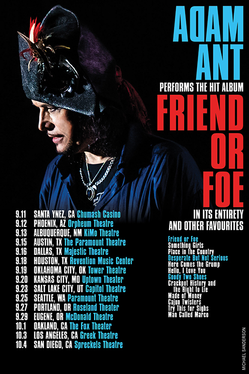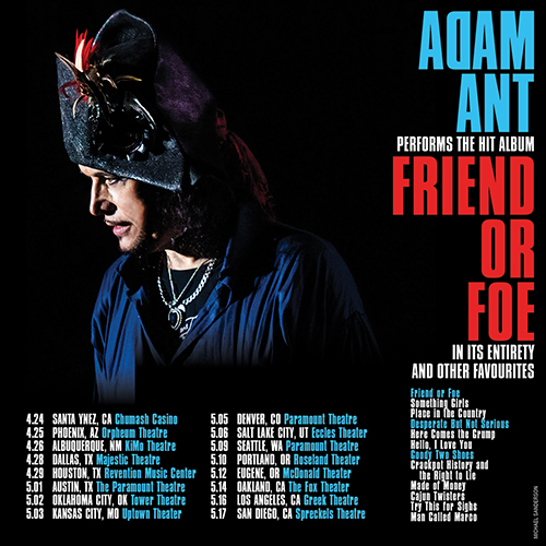 The Adam Ant: Friend or Foe Tour show originally scheduled for May 15 2021 at the Spreckels Theatre, San Diego