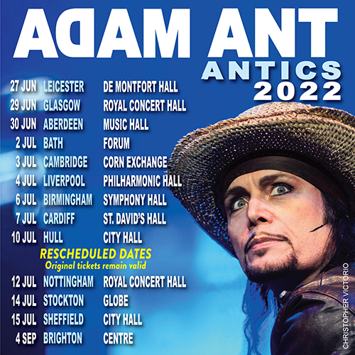 We are pleased to announce though, that Adam Ant will still be playing San Diego on October 31st, 2021 at Humphrey's Concerts By The Bay.