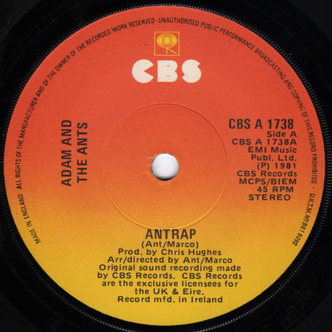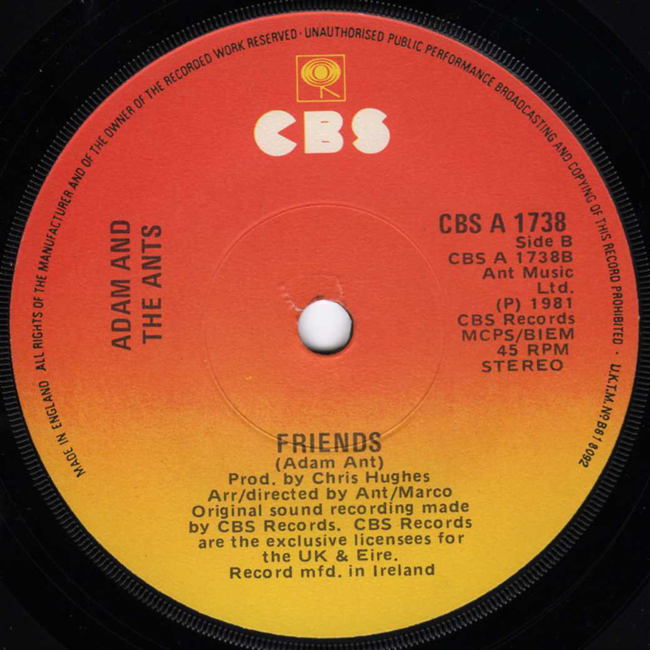 Adam and the Ants Country Label Catalogue Number Matrix numbers Format Release date A-side B-side The third single to be released from the Prince Charming album. The front and back cover of the single were taken by Allan Ballard. The B-side, Friends, is an old Ants song from 1978. |