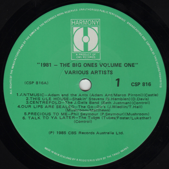Adam and the Ants Country Label Catalogue Number Matrix numbers Format Release date Side 1 Side 2 New Zealand compilation album featuring one Adam and the Ants track - "Antmusic". |