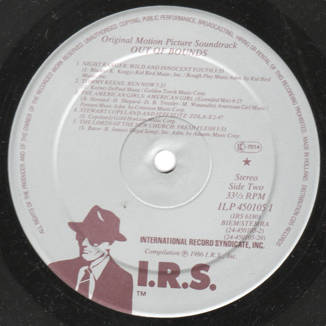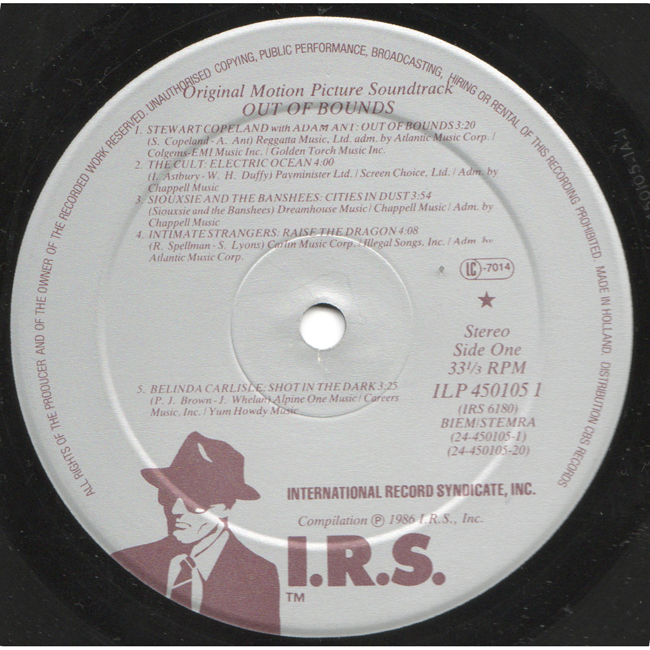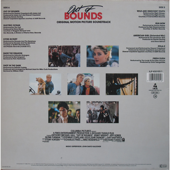 Soundtrack album for the Columbia Pictures film "Out of Bounds" featuring the song Out Of Bounds by Adam Ant and Stewart Copeland.
