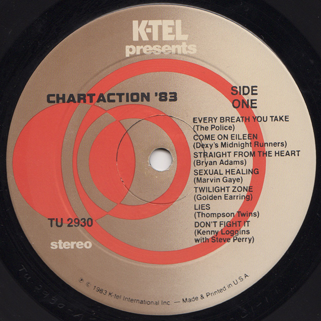 Side 1 The Police - Every Breath You Take Dexy's Midnight Runners - Come on Eileen Bryan Adams - Straight From The Heart Marvin Gaye - Sexual Healing Golden Earring - Twilight Zone Thompson Twins - Lies Kenny Loggins with Steve Perry - Don't Fight it