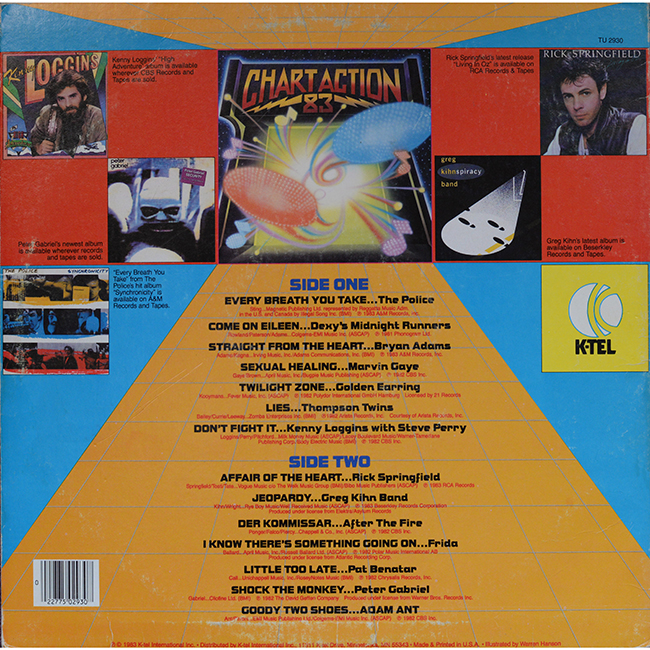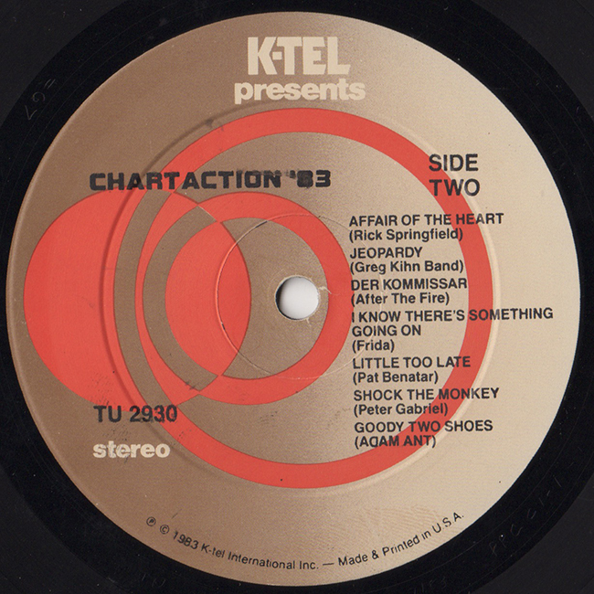 Side 2 Rick Springfield - Affair of the Heart Greg Kihn Band - Jeopardy After The Fire - Der Kommissar Frida - I Know There's Something Going On Pat Benatar - Little Too Late Peter Gabriel - Shock The Monkey Adam Ant - Goody Two Shoes