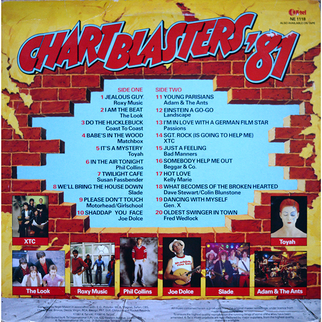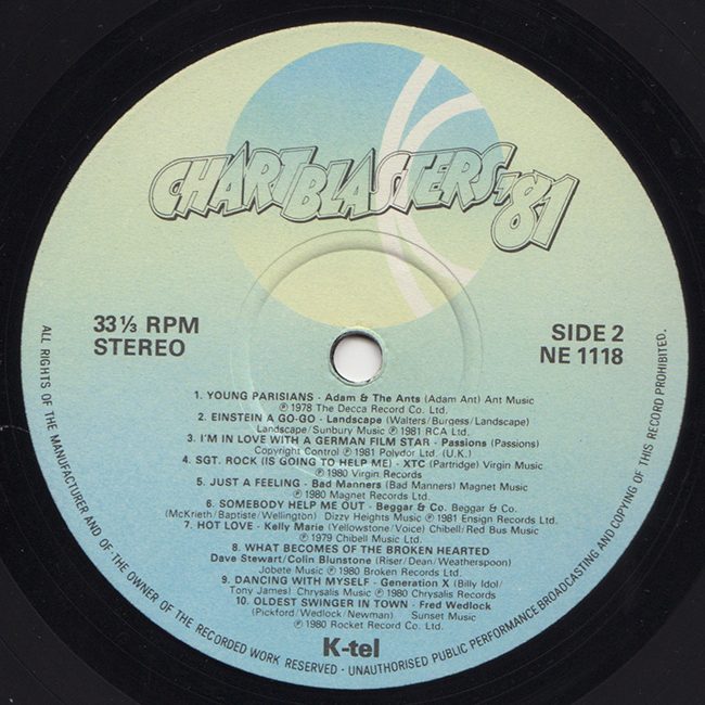 Side 2 Adam and the Ants - Young Parisians Landscape - Einstein A Go-Go Passions - I'm in Love With A German Film Star XTC - Sgt. Rock (is Going to Help Me) Bad Manners - Just a Feeling Beggar & Co - Somebody Help Me Out Kelly Marie - Hot Love Dave Stewart/Colin Blunstone - What Becomes of the Broken Hearted Gen.X - Dancing With Myself Fred Wedlock - Oldest Swinger in Town
