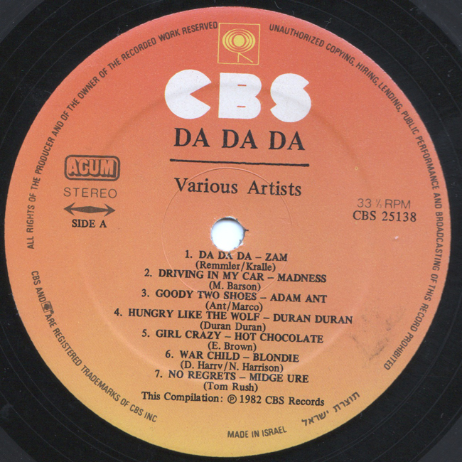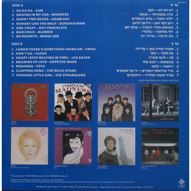 Adam Ant Country Label Catalogue Numbers Matrix numbers Format Release date Side 1 Side 2 1982 Israeli compilation featuring the Adam Ant single Goody Two Shoes The Hebrew text on the front sleeve says Adam and the Ants rather than Adam Ant (Adam v'ha'Namal'im) |