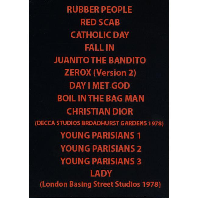 The card with the song title information has the following errors: This version also came in red vinyl. There are 3 Volumes of these lathe cut discs with copy in clear and then also in black, white, another clear, blue and red. |
