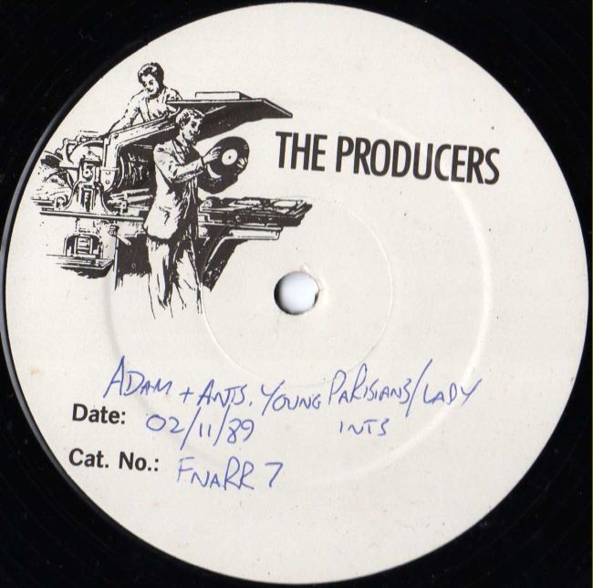 Adam and the Ants Country Label Catalogue Number Matrix numbers Format Release date A-side B-side This 12" record was released in 1989 in two formats, on white vinyl and also a limited edition picture disc. Licensed from Decca, London based record label Damaged Goods put the two sides of the original single on the A side of this disc and two interviews on the B side, the first being from Zerox fanzine which was done in Chelmsford 4th February 1979. The second interview was done for Pogo fanzine in Italy which was done after the band's performance in Milan 17th October 1978 The A side plays at 45rpm and the B side plays at 33rpm This test pressing is on black vinyl and only a few copies were manafactured |