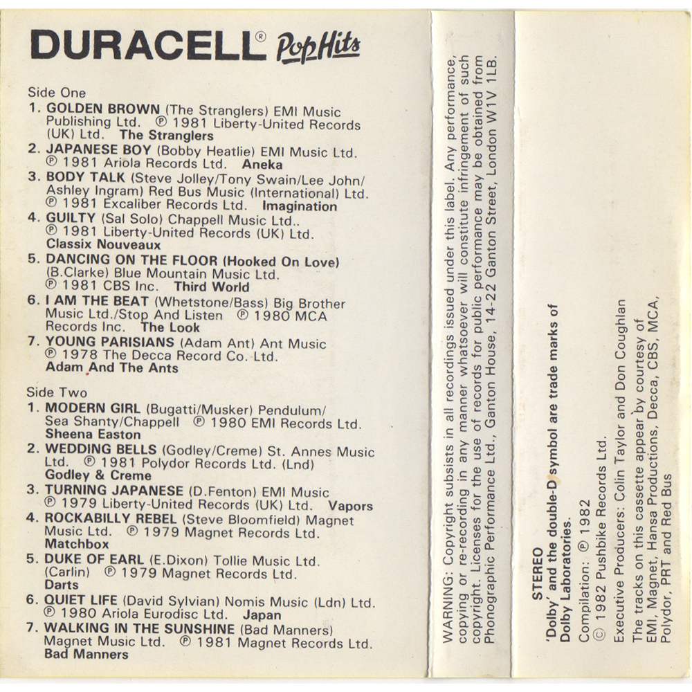 Adam and the Ants Country Label Catalogue Number Matrix numbers Format Release date Side 1 Side 2 Compilation cassette album featuring the Adam and the Ants track Young Parisians |