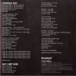 All Rewind copies also have a typographical error in the lyric booklet, instead of reading was a wall full of handicapped, the last word has been altered to say was a wall full of handclaps: