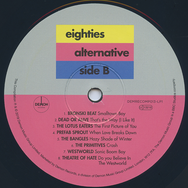 Side 2 Bronski Beat - Smalltown Boy Dead or Alive - That's the Way (I Like it) The Lotus Eaters - The First Picture of You Prefab Sprout - When Love Breaks Down The Bangles - Hazy Shade of Winter The Primitives - Crash Westworld - Sonic Boom Boy Theatre of Hate - Do You Believe in the Westworld
