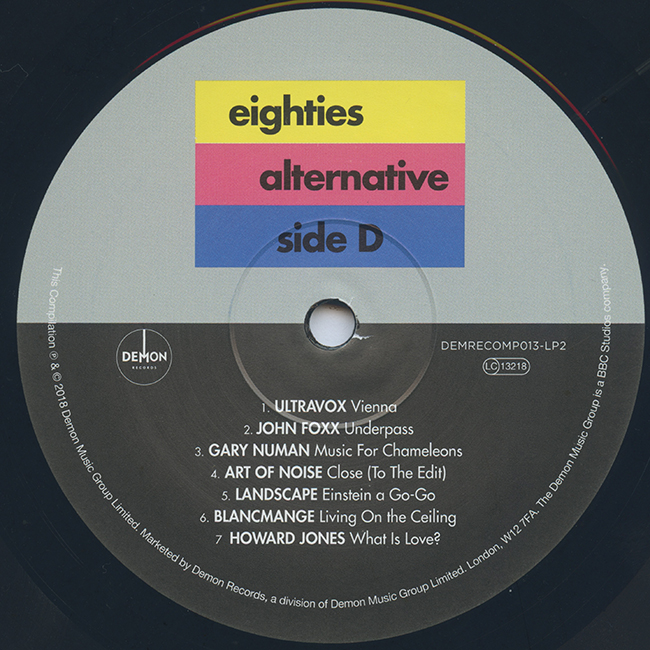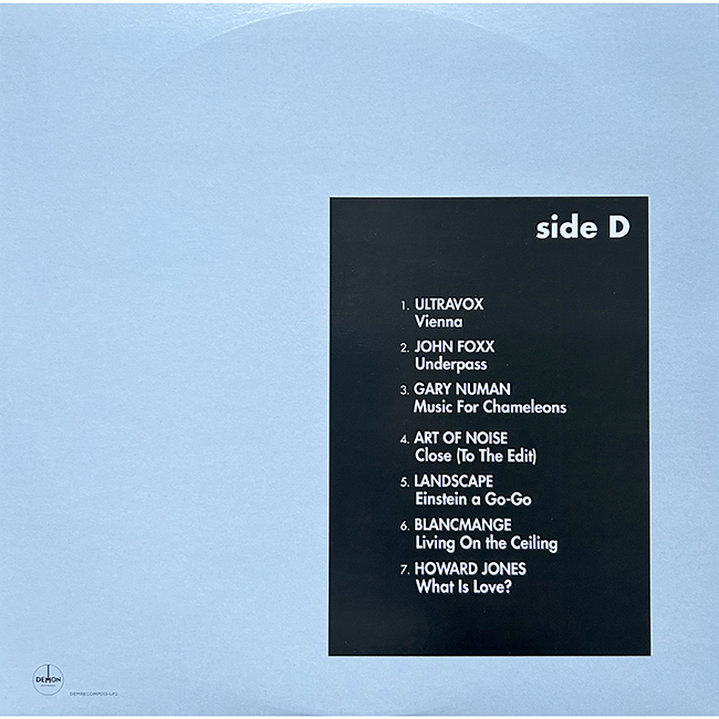 Side 4 Ultravox - Vienna John Foxx - Underpass Gary Numan - Music for Chameleons Art of Noise - Close (to the Edit) Landscape - Einstein a Go Go Blancmange - Living on the Ceiling Howard Jones - What is Love?