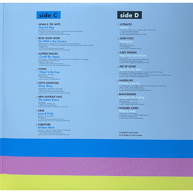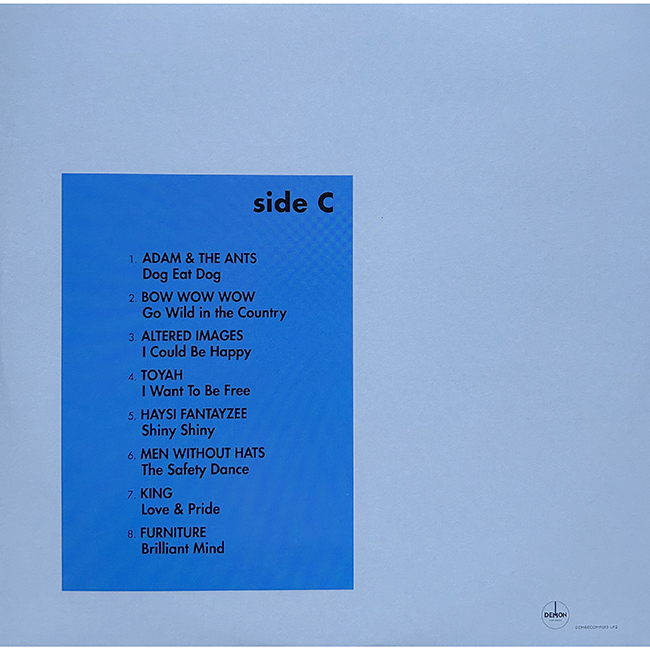 Side 3 Adam and the Ants - Dog Eat Dog Bow Wow Wow - Go Wild in the Country Altered Images - I Could be Happy Toyah - I Want to be Free Haysi Fantayzee - Shiny Shiny Men Without Hats - The Safety Dance King - Love & Pride Furniture - Brilliant Mind