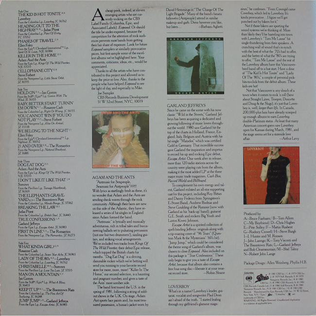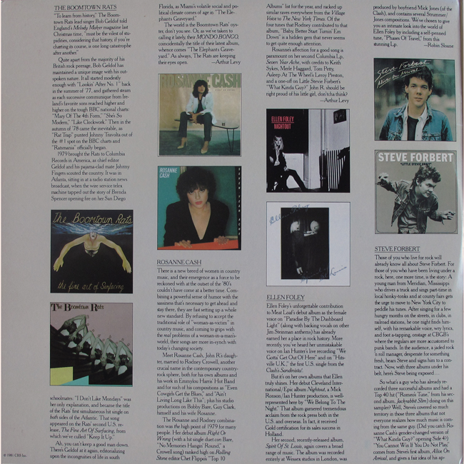 Side 4 Rosanne Cash - What Kinda Girl? Loverboy - Lady of the 80's Sorrows - Christabelle Ian Gomm - Man on a Mountain The Boomtown Rats - Keep it up Garland Jeffreys - Jump Jump