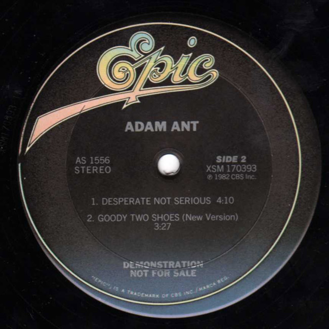 Adam Ant Promotional 12" single to promote the Friend or Foe album in the United States Desperate But Not Serious on side 2 is incorrectly labelled as Desperate Not Serious |