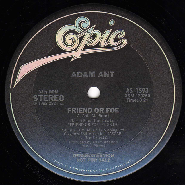 Adam Ant Promotional 12" single to promote the Friend or Foe album in the United States |