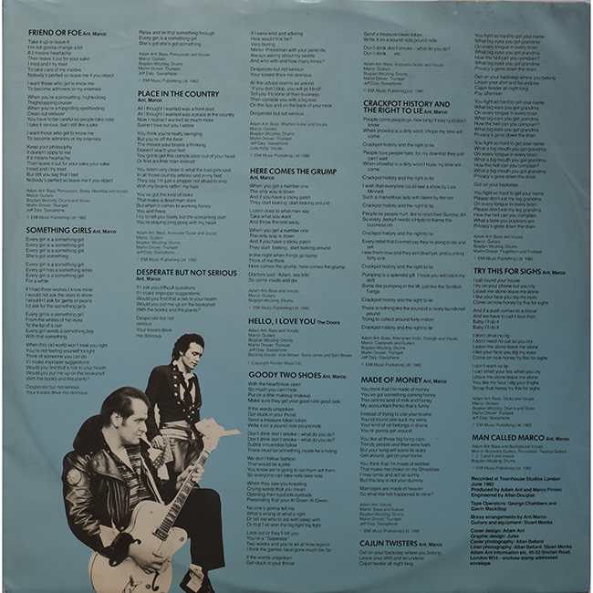 1982 and Adam has gone solo after the success of the Prince Charming Revue