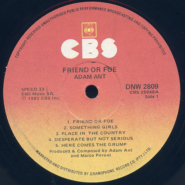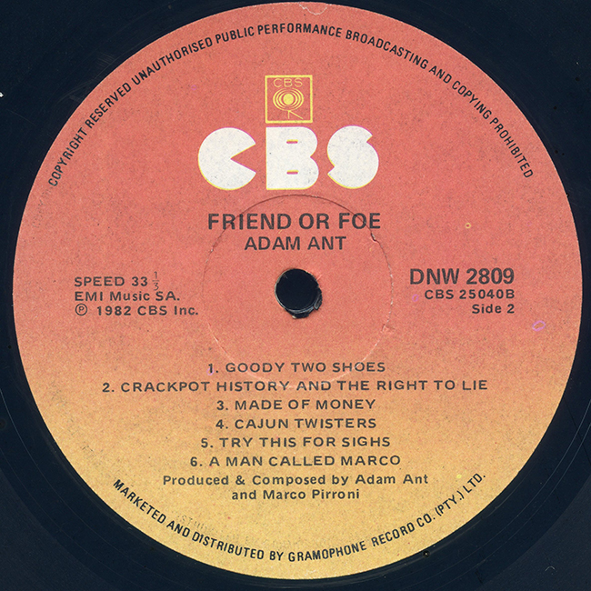Adam Ant Country Label Catalogue Number Matrix numbers Format Release date Side 1 Side 2