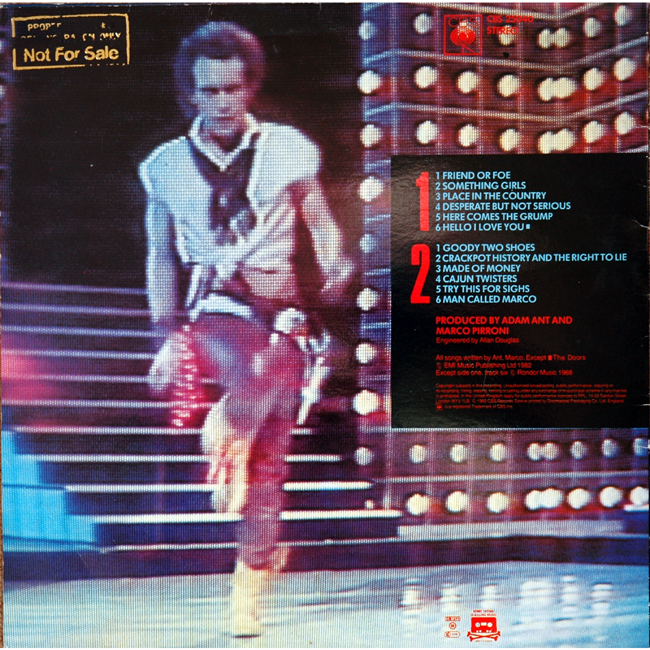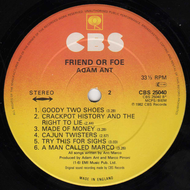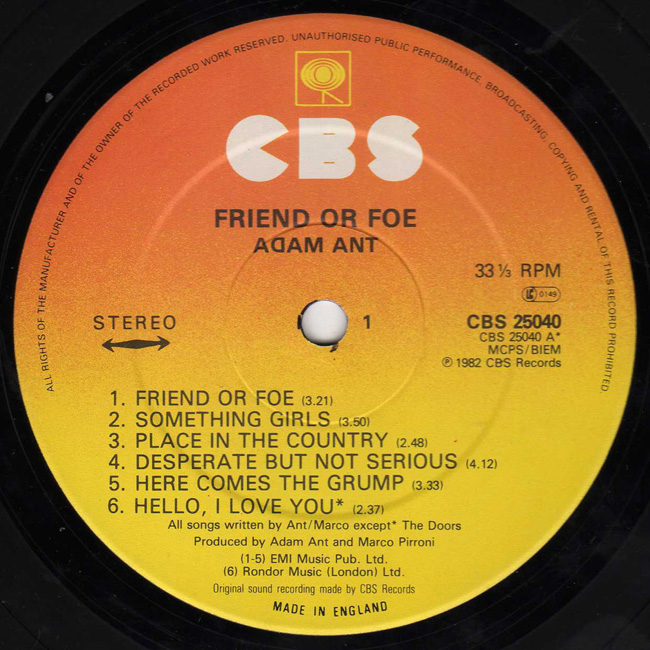 Adam Ant Country Label Catalogue Number Matrix numbers Format Release date Side 1 Side 2