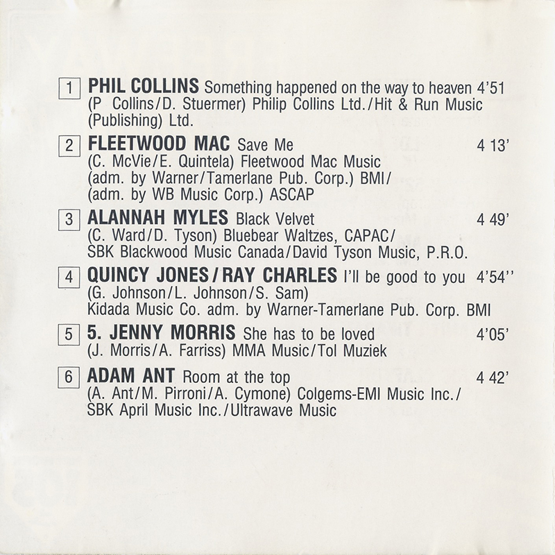Adam Ant Country Label Catalogue Numbers Matrix numbers Format Release date Phil Collins - Something Happened on the way to Heaven 1990 compilation CD including the Adam Ant Track Room At The Top |