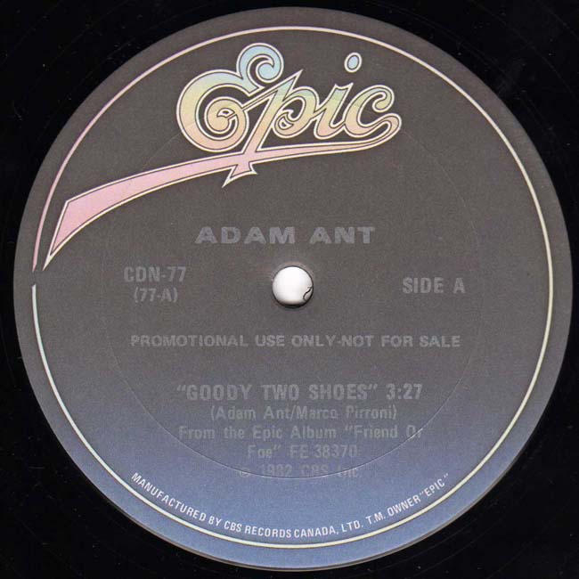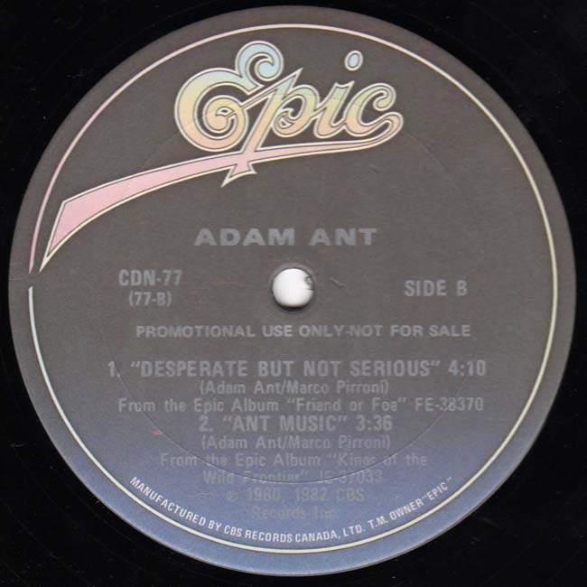 Adam Ant Country Label Catalogue Number Matrix numbers Format Release date A-side B-side Canadian promotional only release |