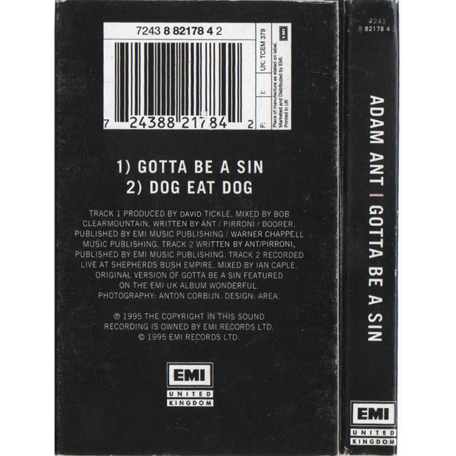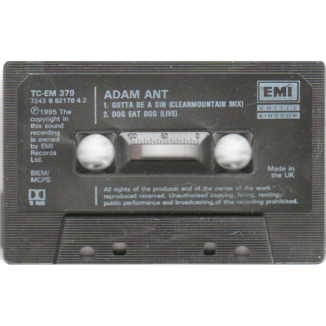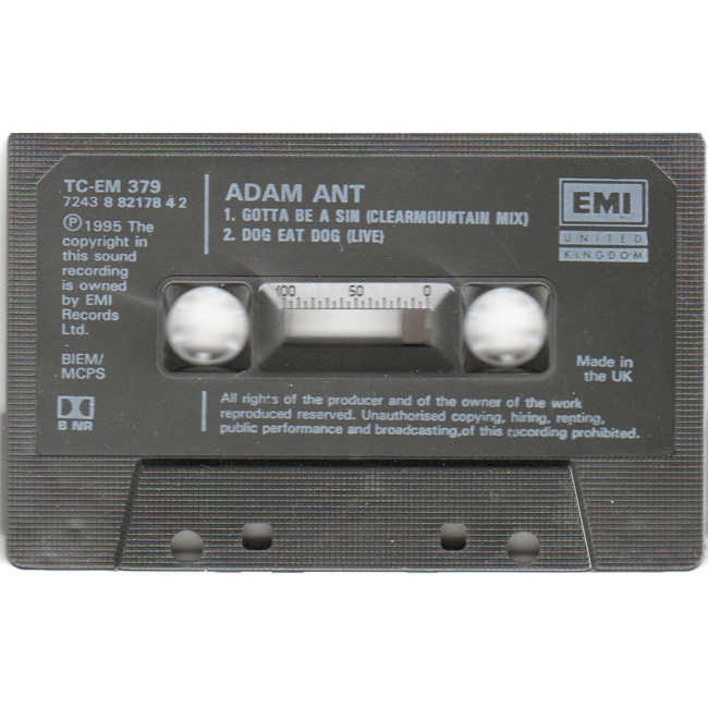 Adam Ant Country Label Catalogue Number Matrix numbers Format Release date Title track Other Tracks Cassette plays both tracks on each side. |