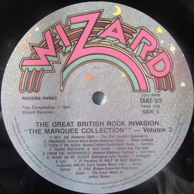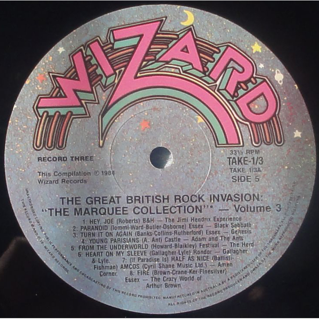 Side 5 The Jimi Hendrix Experience - Hey Joe Black Sabbath - Paranoid Genesis - Turn it on Again Adam and the Ants - Young Parisians The Herd - From the Underworld Gallagher & Lyle - Heart on my Sleeve Amen Corner - (If Paradise is) Half as Nice The Crazy World of Arthur Brown - Fire