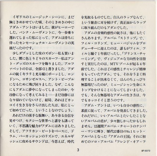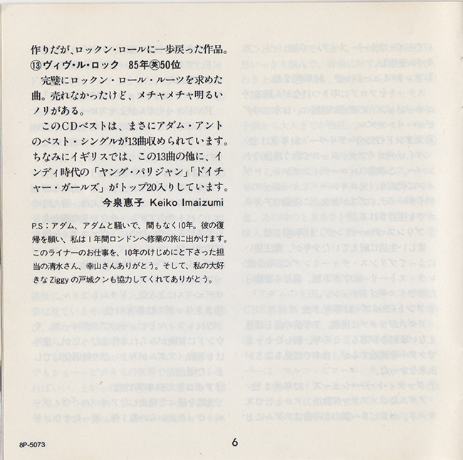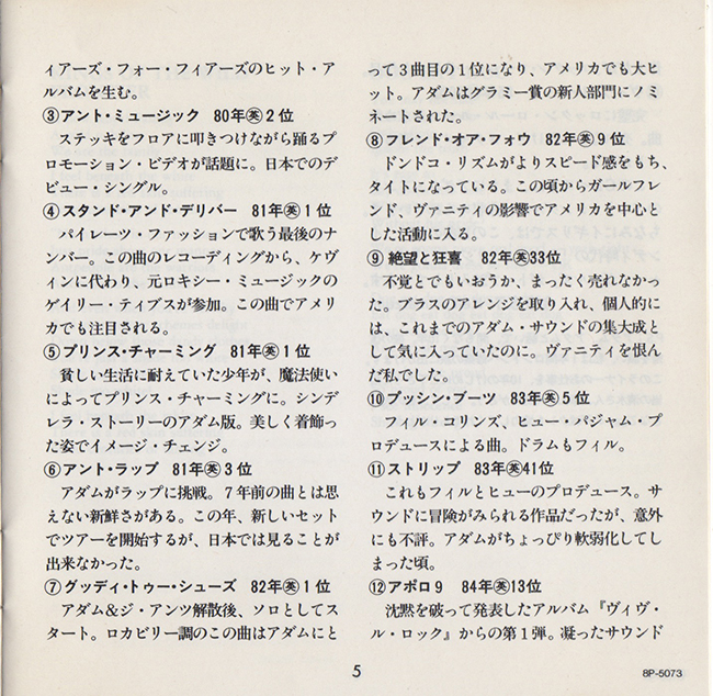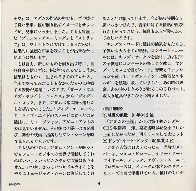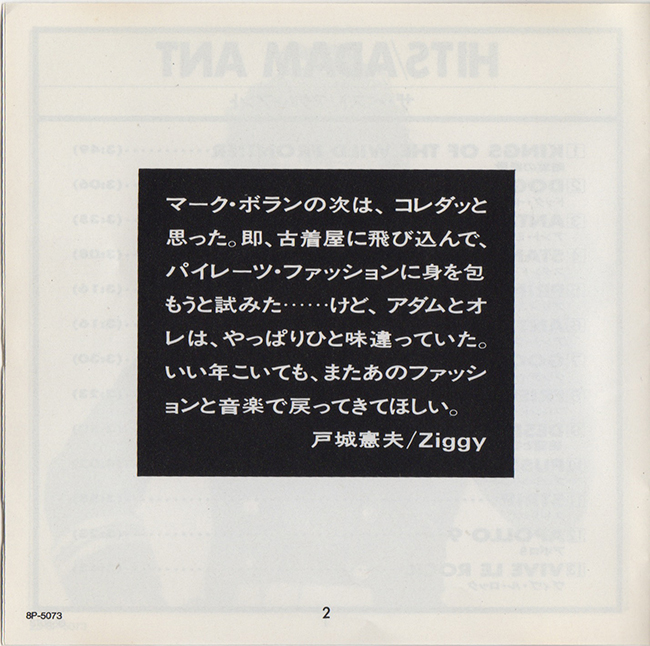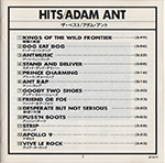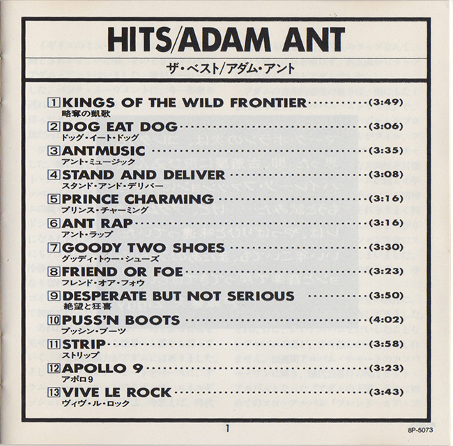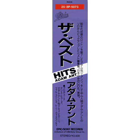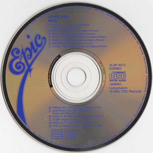 Adam Ant Country Label Catalogue Number Matrix numbers Format Release date Tracks 13 track CD album spanning the singles from the CBS/Epic era of Adam and the Ants and Adam Ant solo |