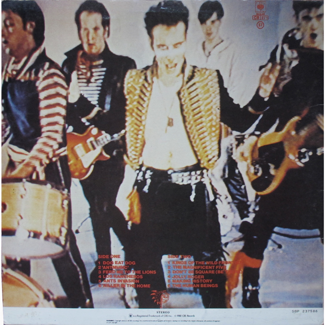 Adam Ant Recorded at Rockfield Studio in Monmouth, Wales in August 1980, this new 5 piece band were to produce one of the most iconic albums of the 80s The front cover of the album is a photograph taken from the monitor during the filming of the Kings of the Wild Frontier video in early August 1980 |