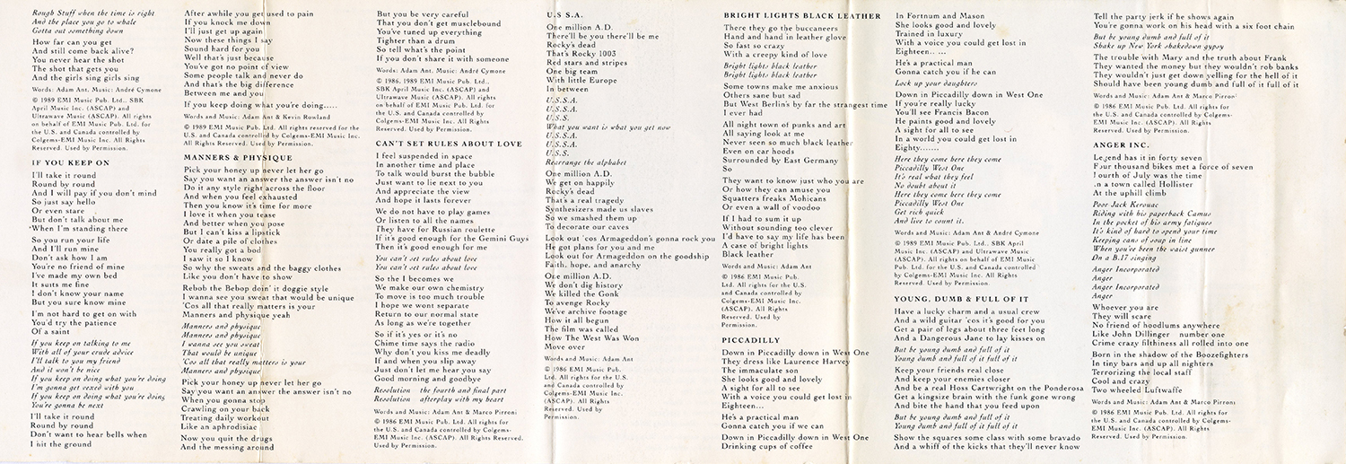 Adam Ant Country Label Catalogue Number Matrix numbers Format Release date Side 1 Side 2