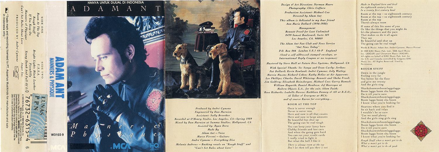 Adam Ant - vocals Indonesian cassette release, licensed through PT. Aquarius Musikindo for manufacture and sale in Indonesia. |
