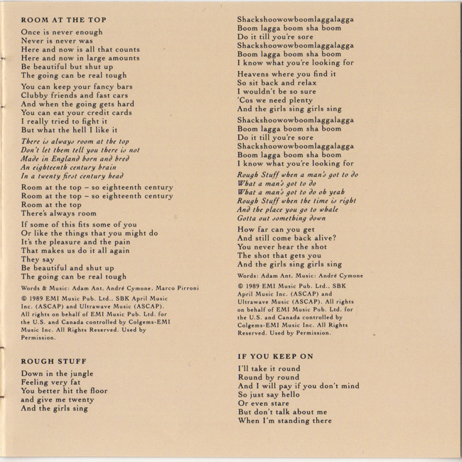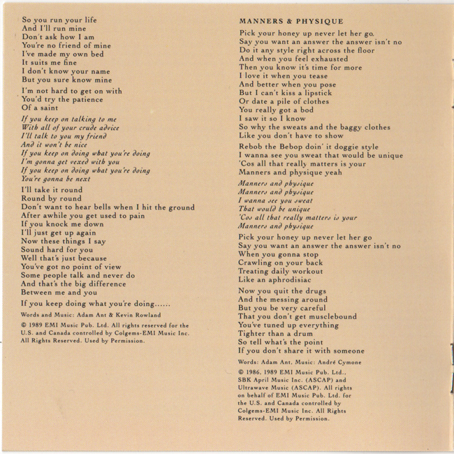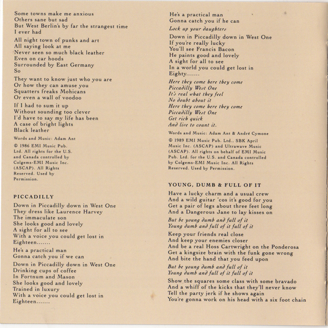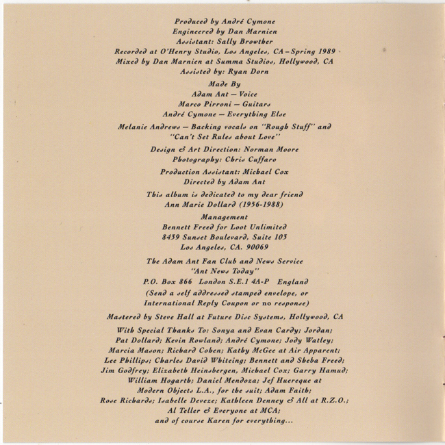 Adam Ant Country Label Catalogue Number Matrix numbers Format Release date Tracks