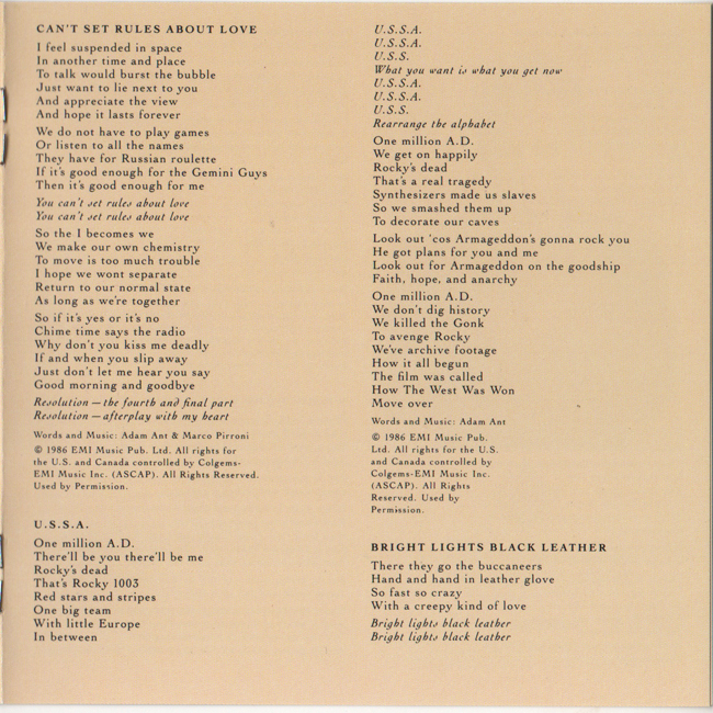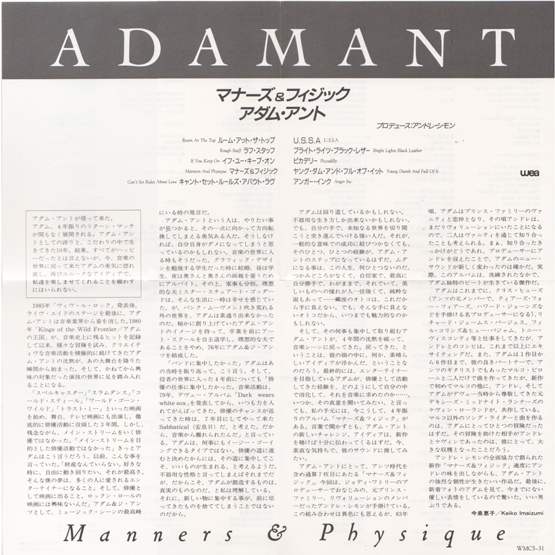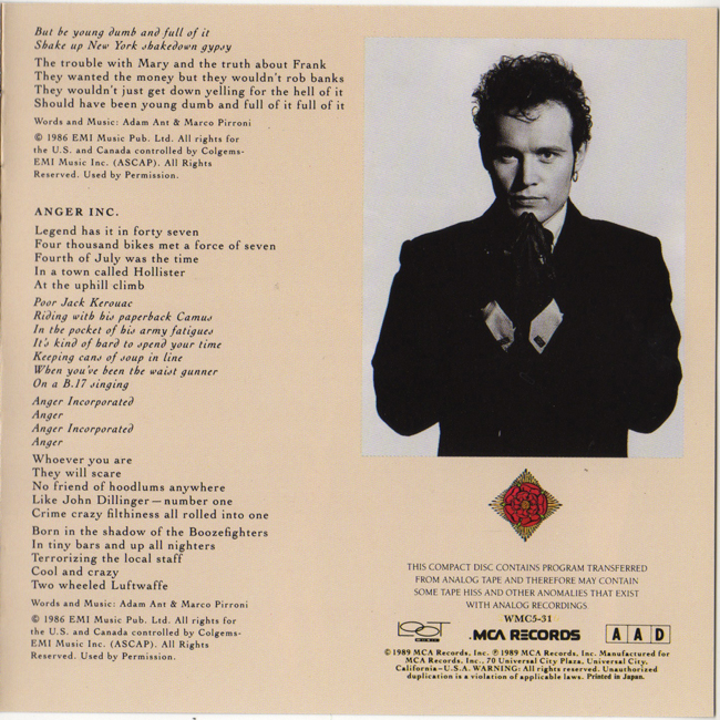 Adam Ant - vocals Japanese promotional CD |